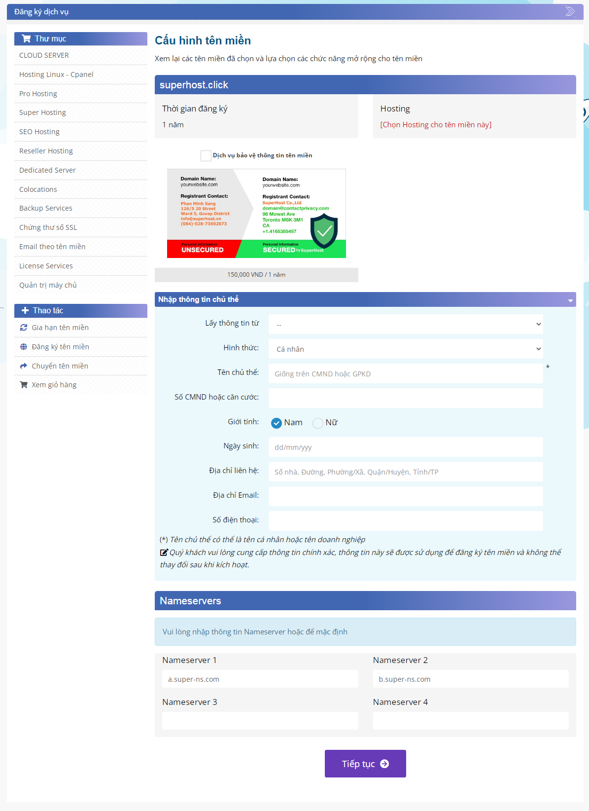 Hướng dẫn đăng ký tên miền tại SuperHost