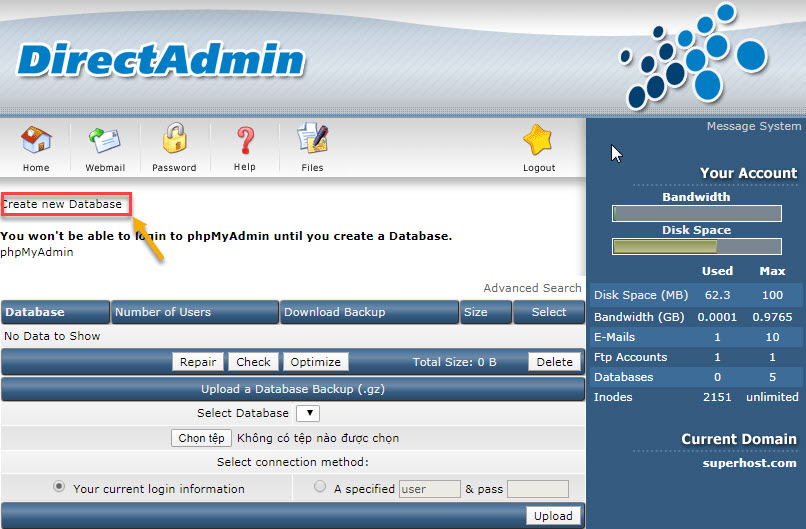 Bước 1: Đăng nhập DirectAdmin bằng tài khoản Hosting của bạn