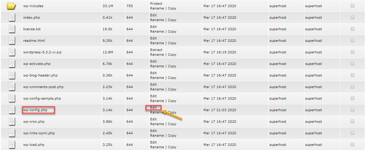 Bước 5: Di chuyển toàn bộ mã nguồn bên trong folder wordpress ra thư mục gốc public_html