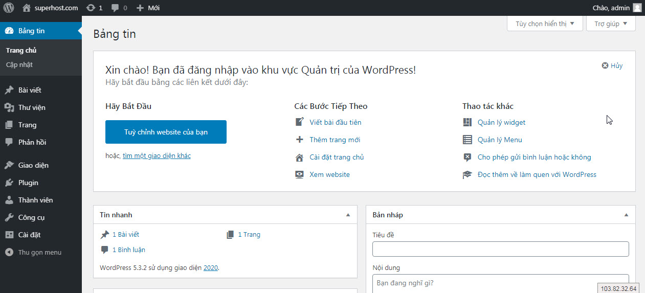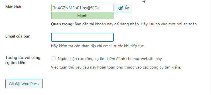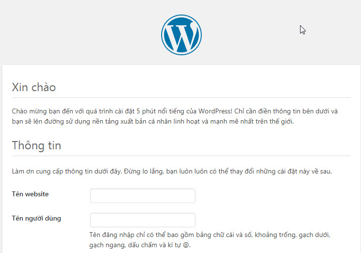 Bước 8: Hoàn tất cài đặt wordpress