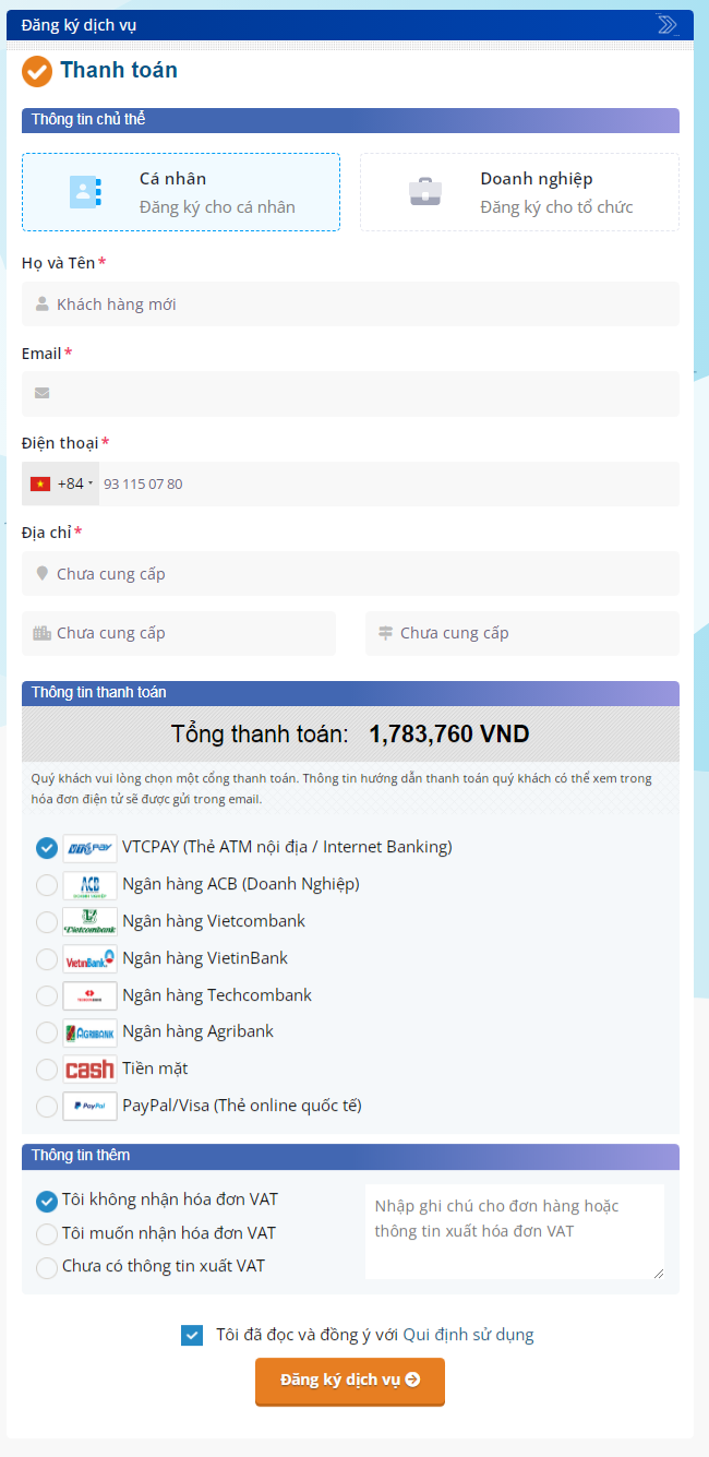 Thông thường việc đăng ký tại các nhà cung cấp Hosting sẽ giống nhau, chỉ khác ở giao diện website của mỗi nhà cung cấp. Bạn có thể liên hệ trực tiếp với nhân viên kinh doanh để được hỗ trợ đăng ký nhanh nhất, hoặc bạn có thể thao tác trực tiếp trên website.