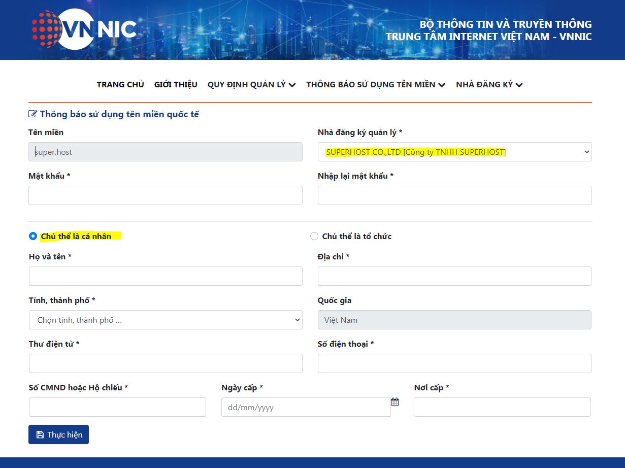 Sau khi điền hoàn tất Form thông tin bấm vào nút Thực hiện ở cuối để hoàn tất.