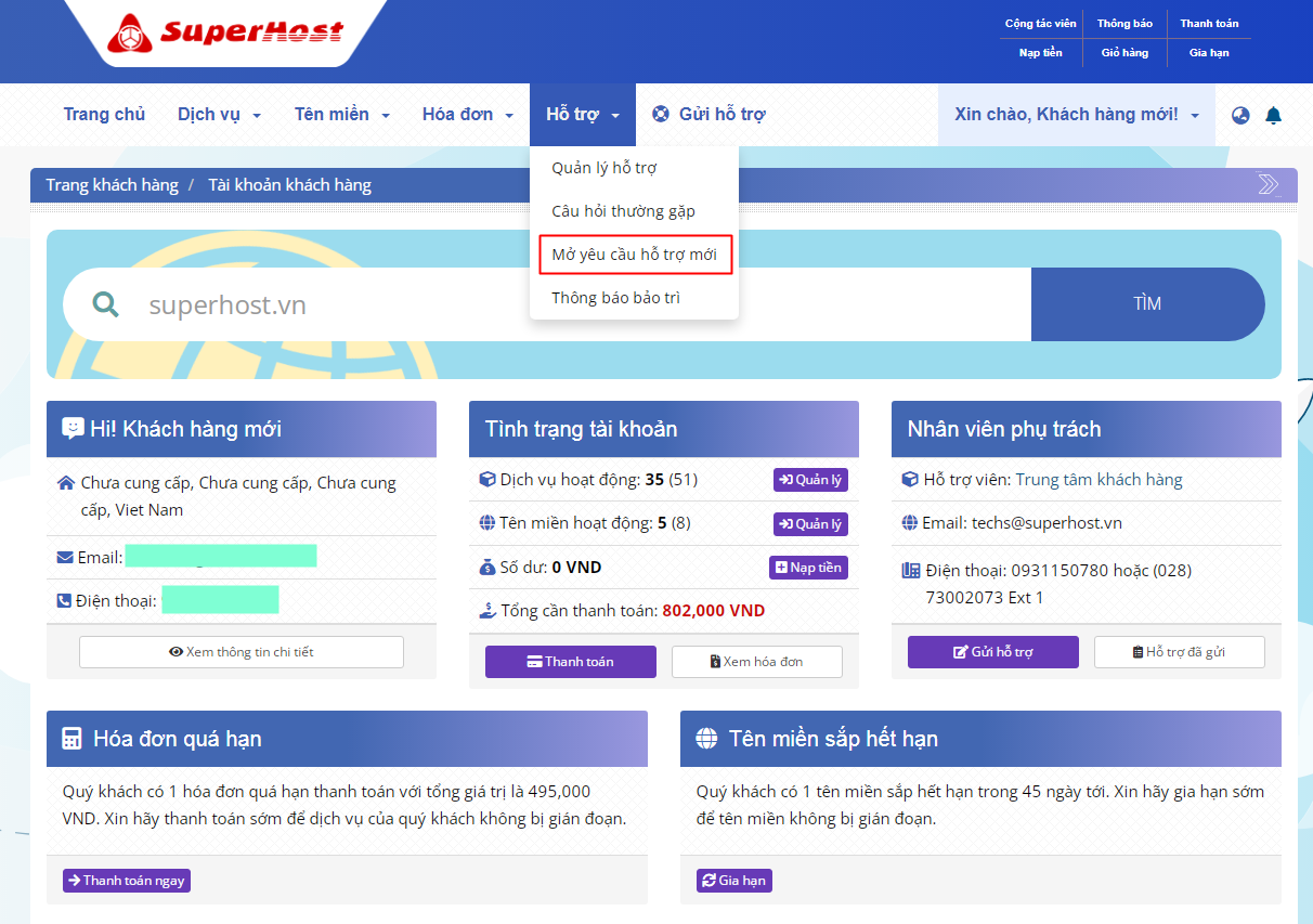 Quý khách cần hỗ trợ vui lòng liên hệ Công ty SuperHost qua: