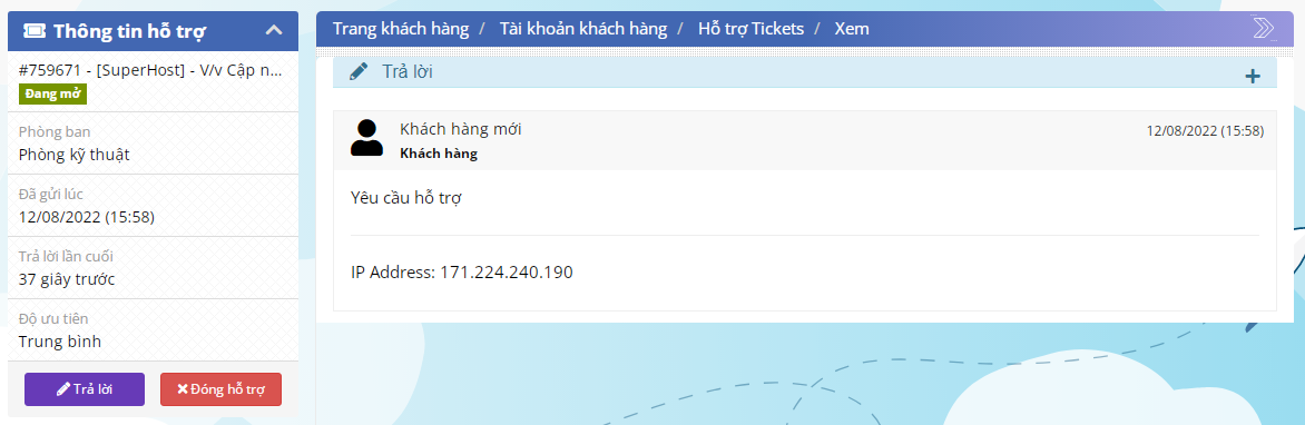 Ngoài ra, SuperHost cũng tập trung hỗ trợ thông qua Ticket (Phiếu yêu cầu hỗ trợ). Ticket là phương thức hỗ trợ tối ưu nhất vì hệ thống sẽ lưu lại các ticket đã hỗ trợ để các lần hỗ trợ sau dễ dàng hơn.