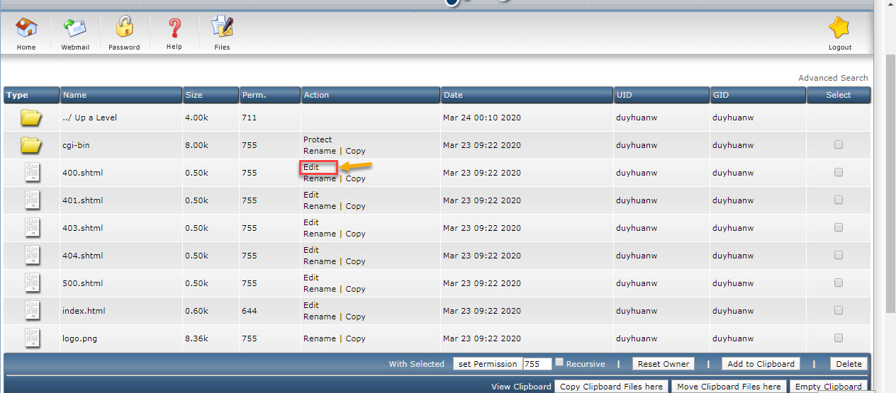 Bước 2: Đến Files cần chỉnh sửa Click vào Edit.