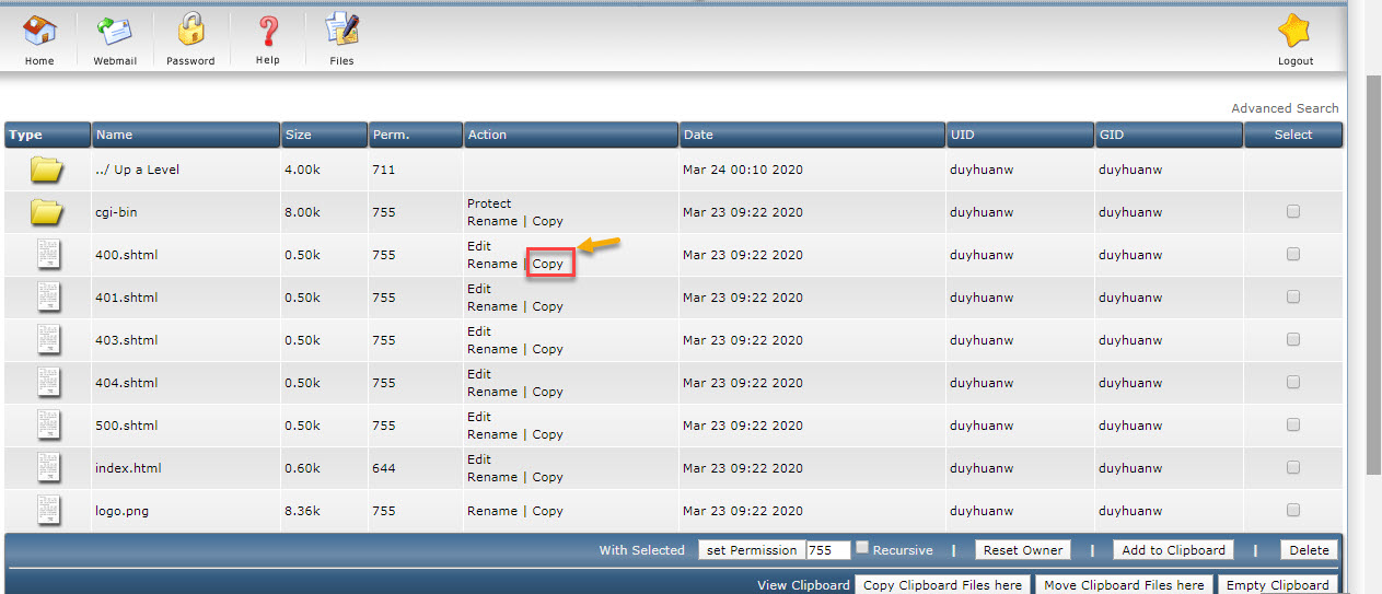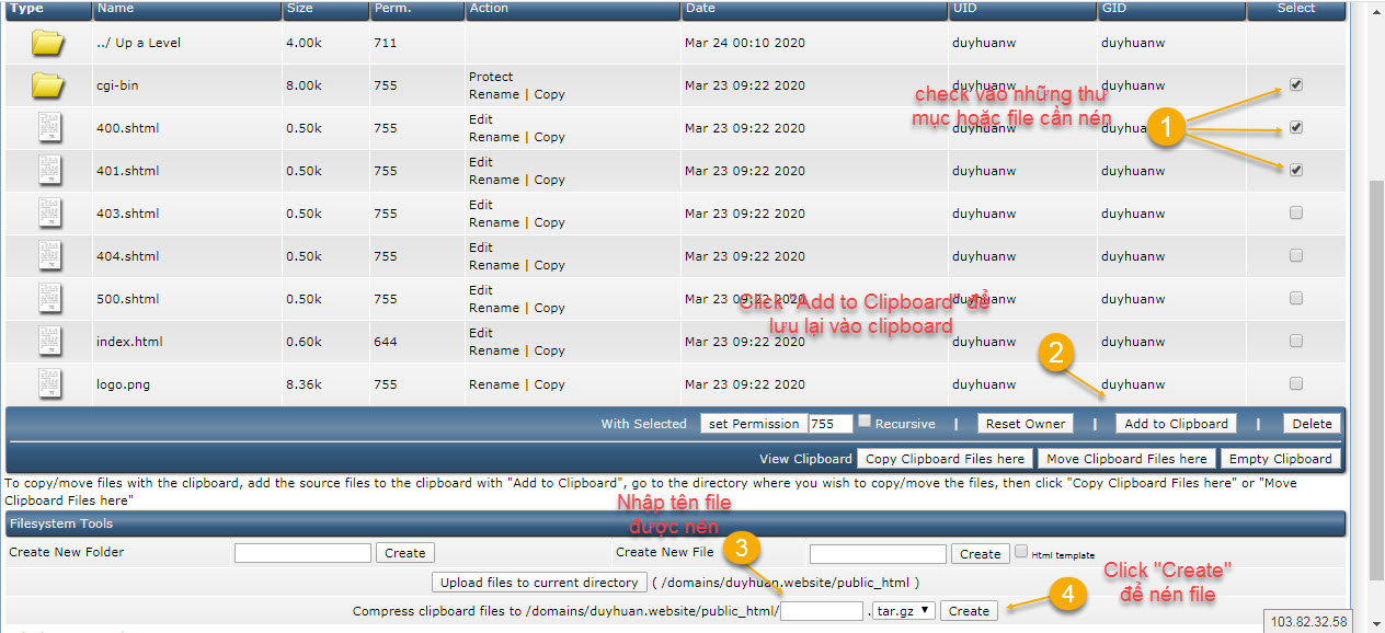 Bước 1: Check vào các file hoặc thư mục cần copy hoặc move. Click vào Add to Clipboard.