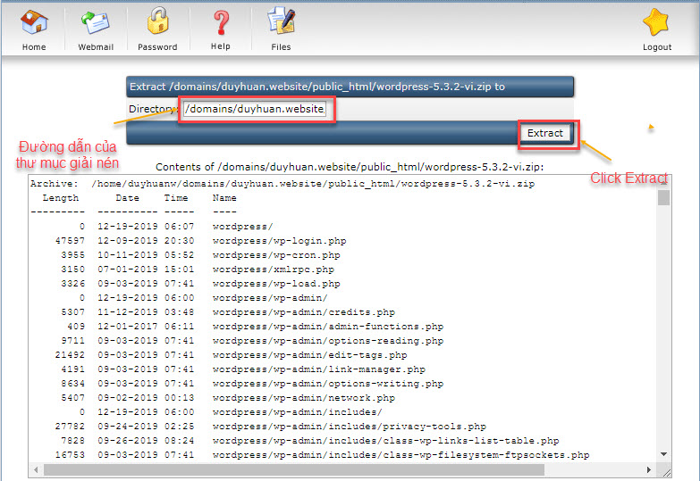 Bước 2: Đường dẫn cần giải nén và click vào Extract.