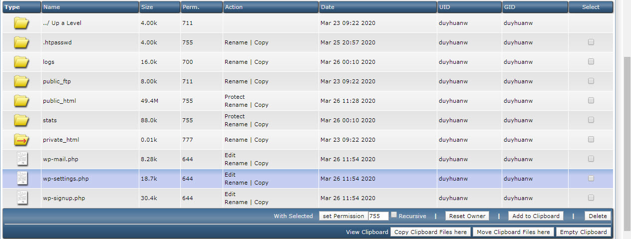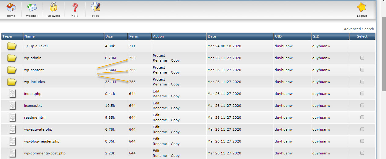 Bước 1: Check vào các file hoặc thư mục cần phân quyền.