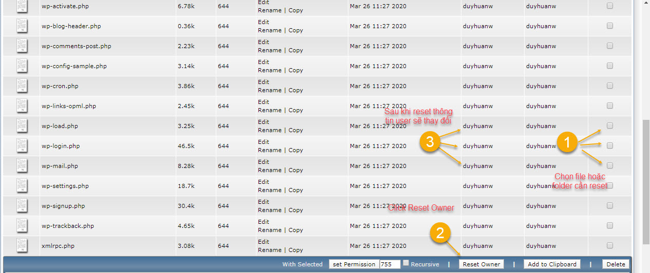 7. Reset lại chủ sở hữu (Owner) của file or folder.