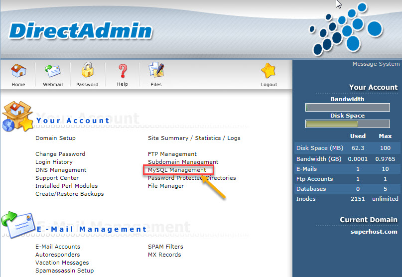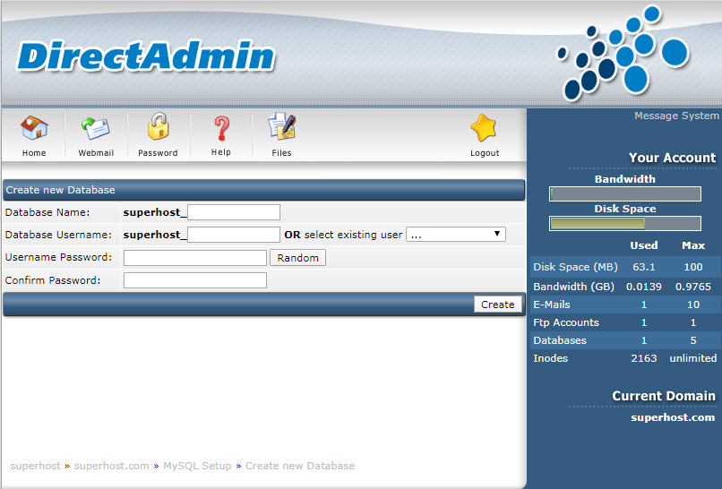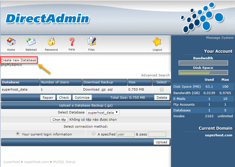 Hướng dẫn tạo database trong Hosting DirectAdmin