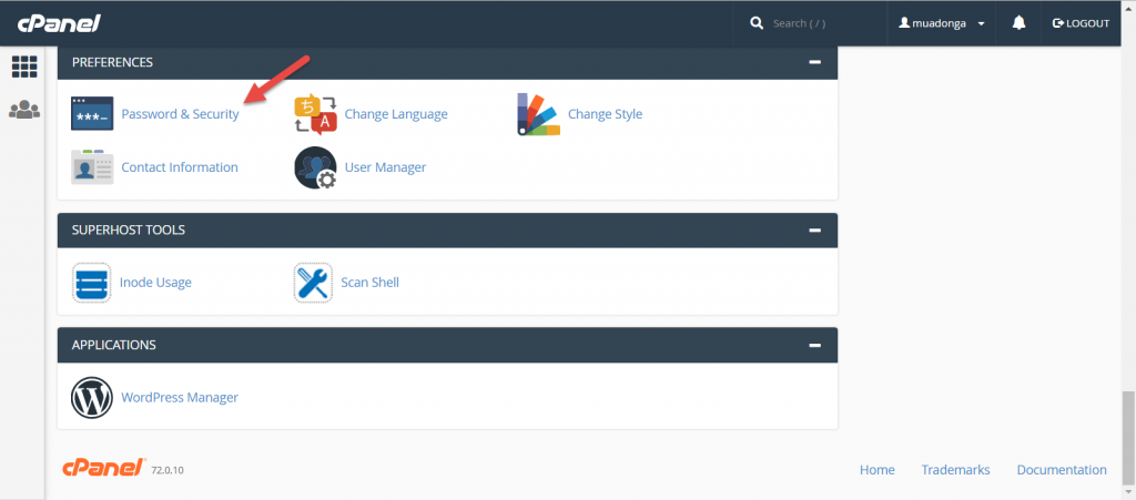 Bước 1: Nếu bạn đang ở trong Cpanel, bạn hãy tìm tới mục Password & Security