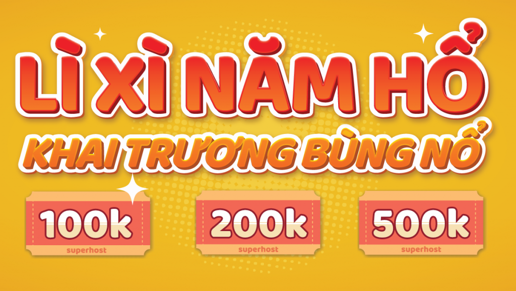 Trong không khí đầu xuân năm mới, Công ty SuperHost xin gửi lời cảm ơn và lời chúc An khang thịnh vượng, Vạn sự như ý đến với Quý khách hàng đã đồng hành cùng công ty trong suốt thời gian qua. Hòa chung không khí mùa xuân yêu thương, SuperHost gửi đến chương trình lì xì đầu năm để tri ân và chúc mừng năm mới tới Quý khách hàng đã gắn bó cùng SuperHost trong những năm qua cũng như đón chào các khách hàng mới sẽ đi cùng SuperHost trong năm mới 2022.
