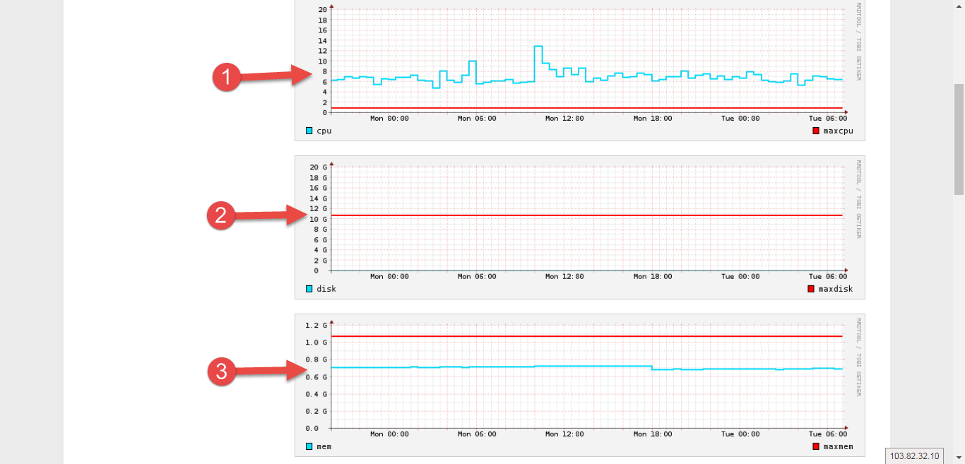 Bước 4: Tại đây bạn có thể quan sát tình trạng tài nguyên Cloud Server bạn đang sử dụng sau: