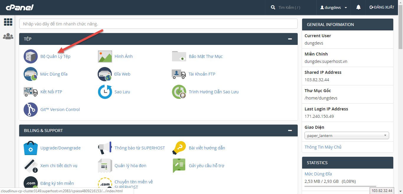Bước 1: Truy cập vào cPanel theo đường dẫn sau: