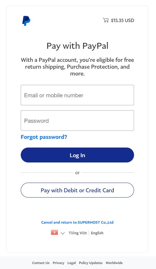 Bước 3: Đăng nhập Paypal và hoàn tất thanh toán