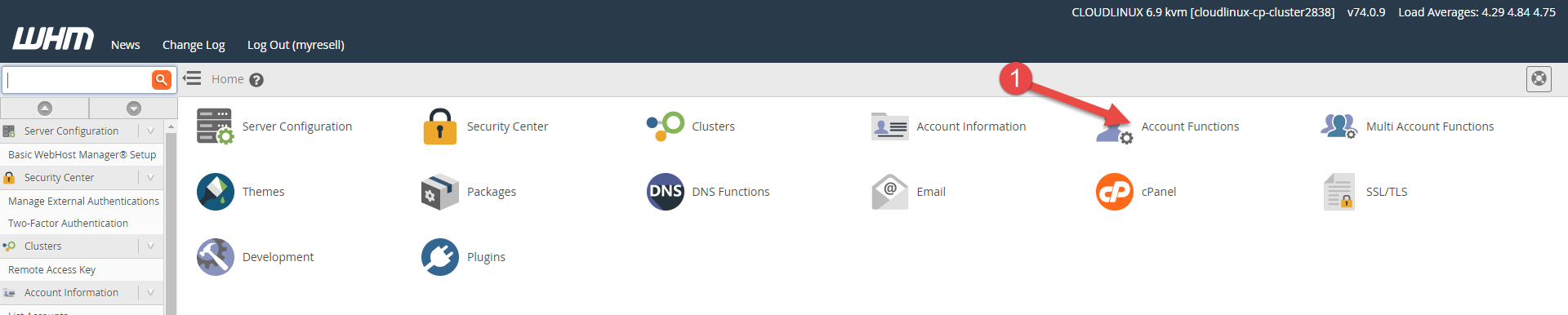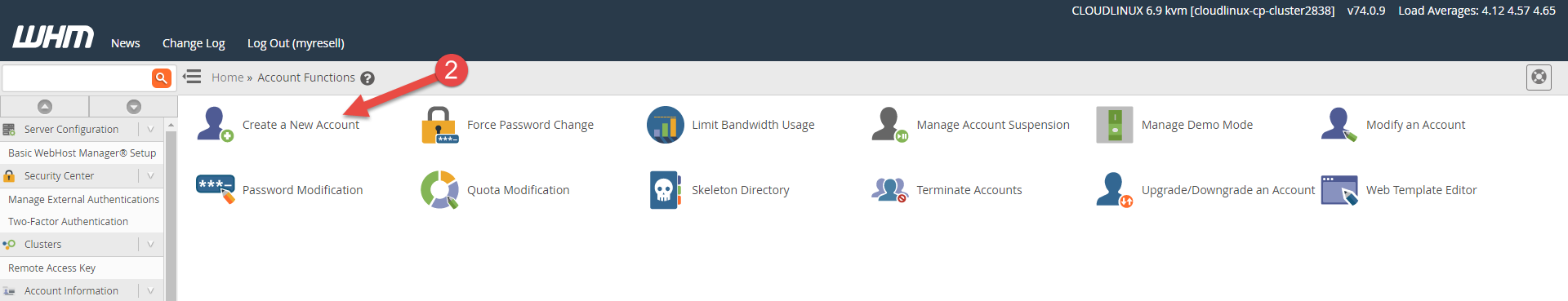 Bước 1: Tại giao diện quản lý SEO Hosting bạn chọn Account Functions => Create a New Account