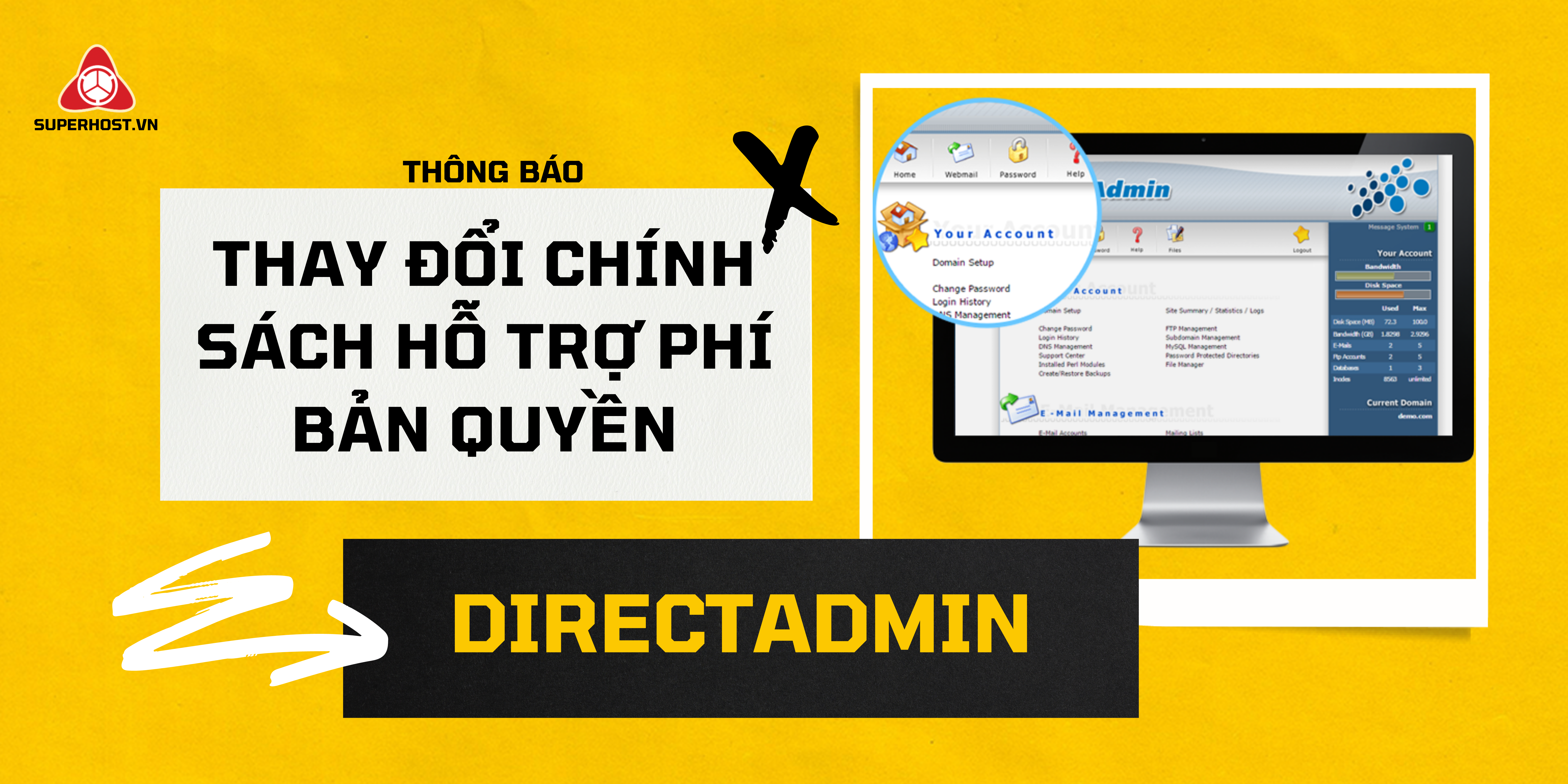 Thông báo thay đổi chính sách hỗ trợ phí bản quyền DirectAdmin